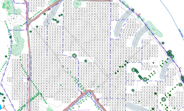 – Preliminary layouts of photovoltaic plants on potential terrain in specialized 3D civil software with production simulation in PVSyst;